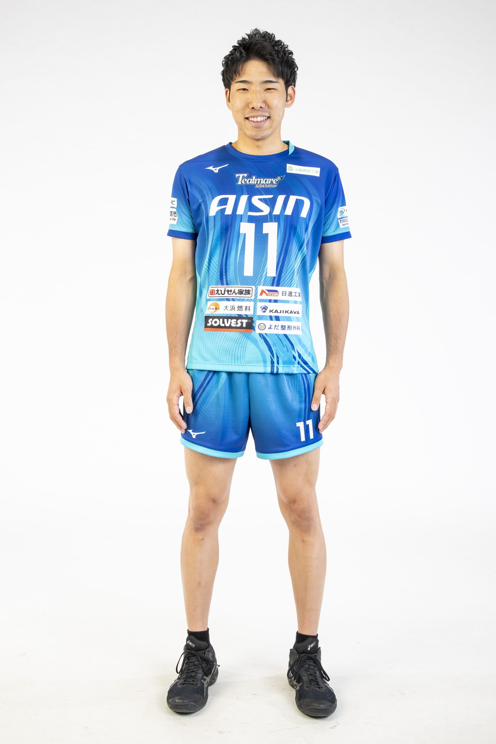 2025-26シーズンのユニフォームをご紹介いたします。カラーバリエーションはアイシングループのイメージカラーである『青』と『白』の2色で、ユニフォームスポンサーとして16社の企業様にご支援・ご協力いただいております。ファンの皆様、地元碧南市、ユニフォームスポンサー様、応援していただいている方々の全員の想いを胸に、今シーズンもVリーグ優勝を目指して頑張って参ります。