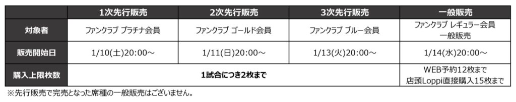 席種「アウェイサイド席B」「アウェイエンド席D」「3階観客席」は自由席となりますが試合中の座席の移動はご遠慮ください。