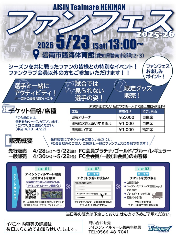 下記日程にて「ファンフェス2025-26」チケットを販売いたします!ファンクラブ会員の方は無料参加クーポンがございます。詳細はファンクラブアプリをご確認ください。(申込:4/10~4/22)